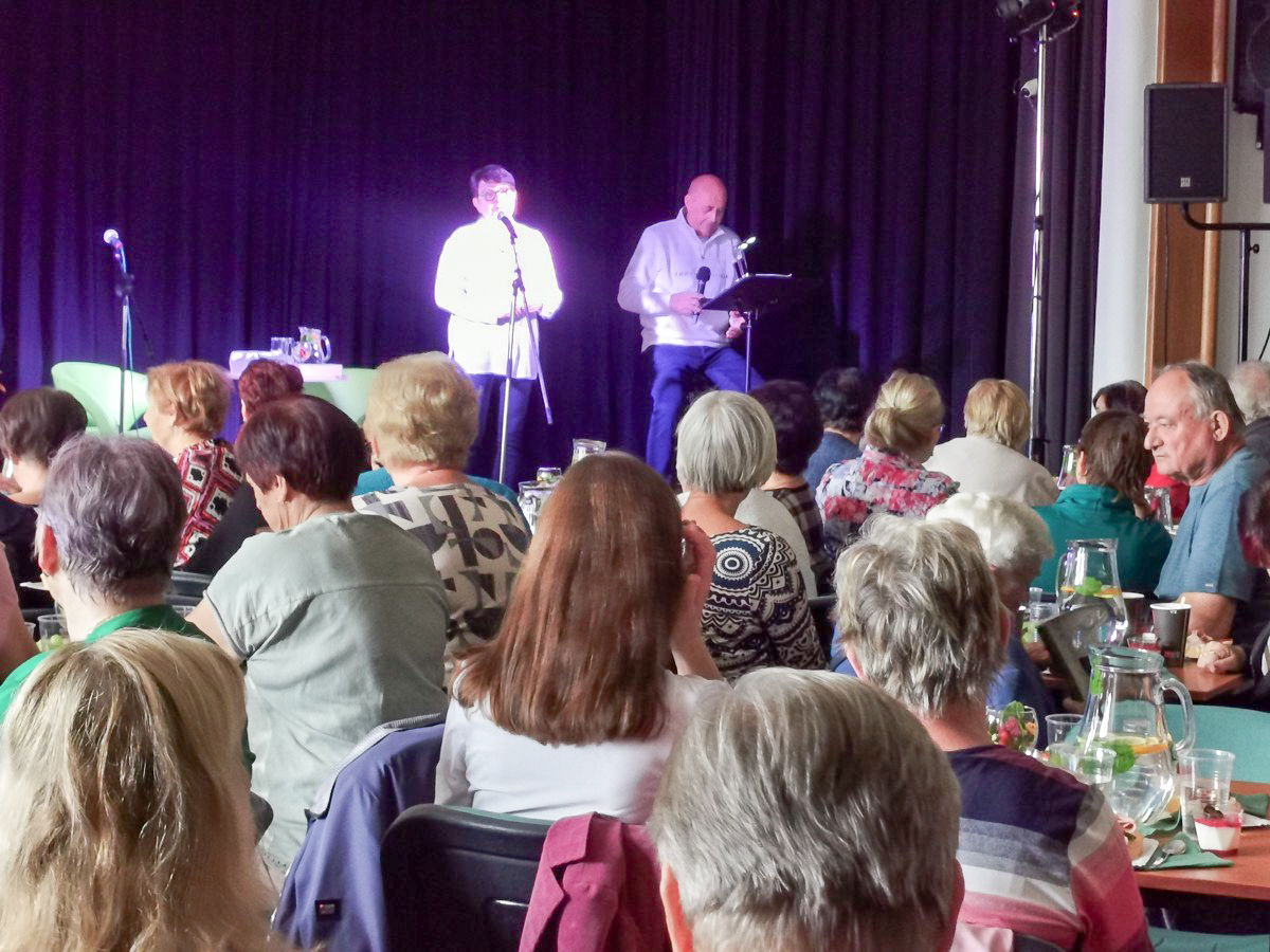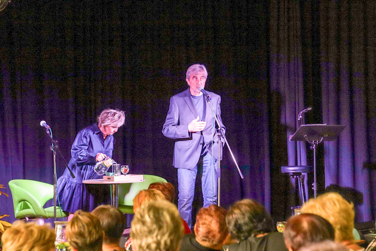 Pro přítomné bylo připraveno nejen přátelské posezení s občerstvením, ale i bohatý doprovodný program. Role moderátora se ujal Petr Salava z agentury Amfora, která dlouhodobě Hamzovu léčebnu podporuje. Po úvodní soutěžní části přišli na pódium hosté večera – Eva Hrušková a Jiří Štědroň.