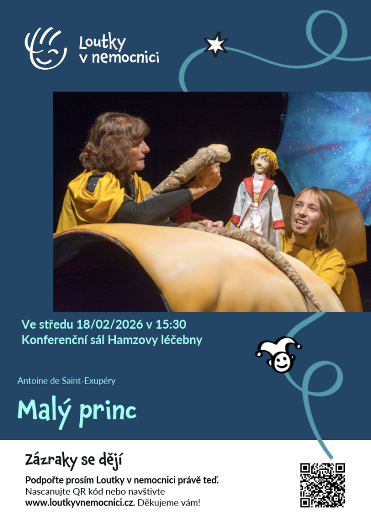 Přijďte se zastavit a nechat se unést příběhem o přátelství, lásce a naději. Poetická adaptace Malého prince vám připomene, že to nejdůležitější je očím neviditelné a že správně vidíme jen srdcem. Čeká vás další skvělé představení v podání Loutek v nemocnici.